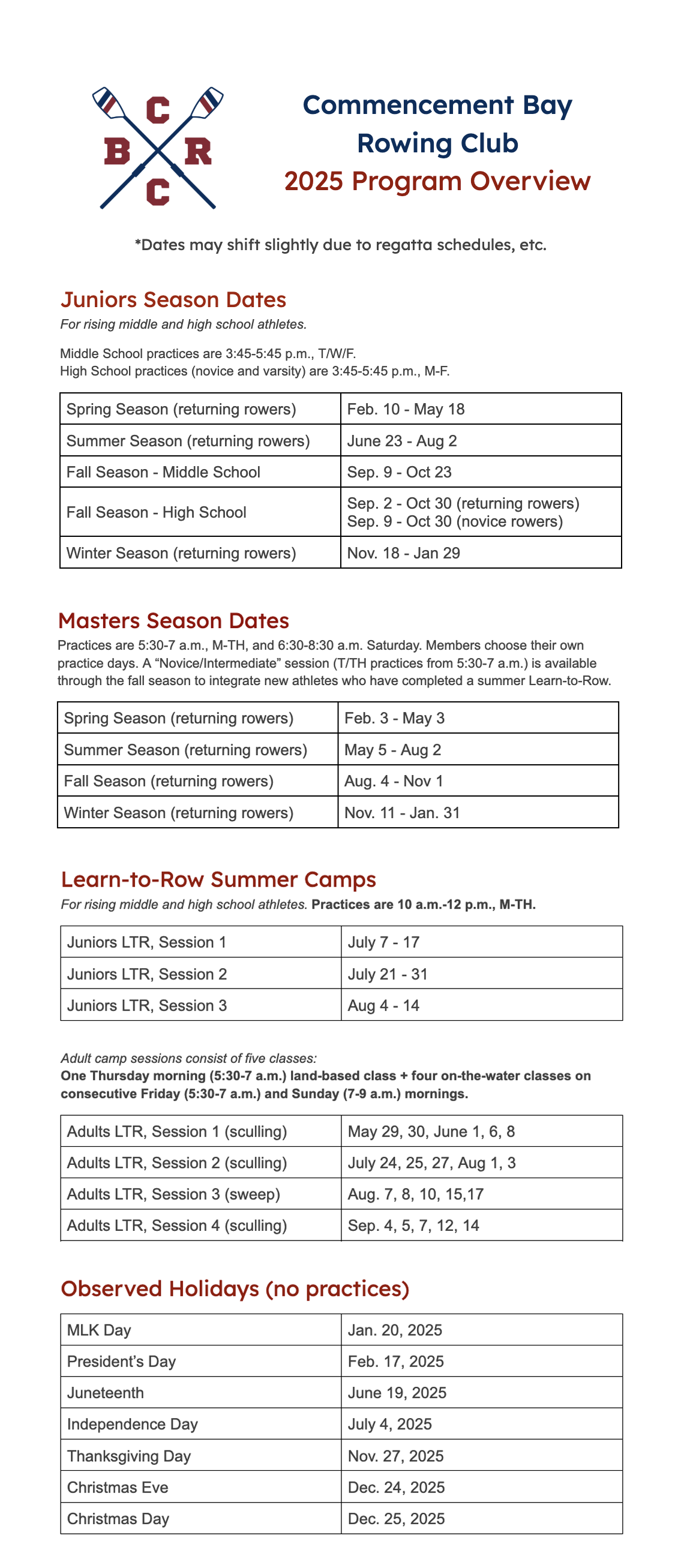 June 12 - 15, Juniors - Youth Rowing National Champs (Sarasota, FL)
